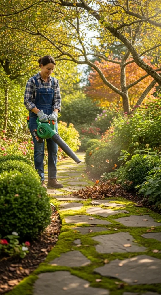 A leaf blower clears paths, decks, and driveways in minutes. If you prefer something quieter, try a rake vacuum that collects leaves as you go. Electric options are budget-friendly and easy to maintain.