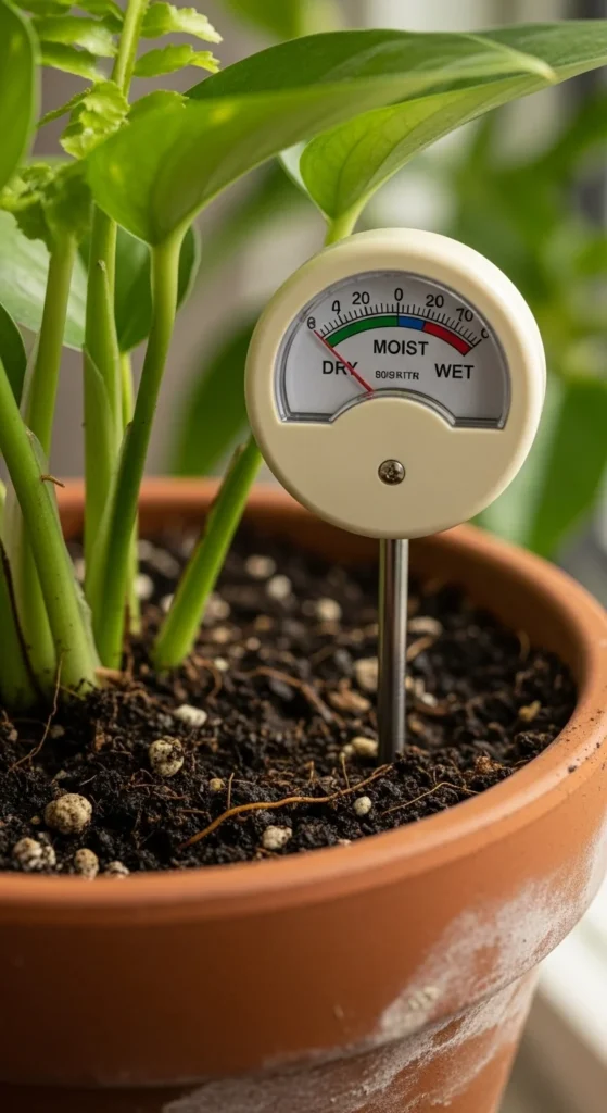 A moisture meter helps you know exactly when to water. Just insert the probe into soil and read the dial. It prevents both overwatering and dry spells — especially useful for indoor plants or container gardens.