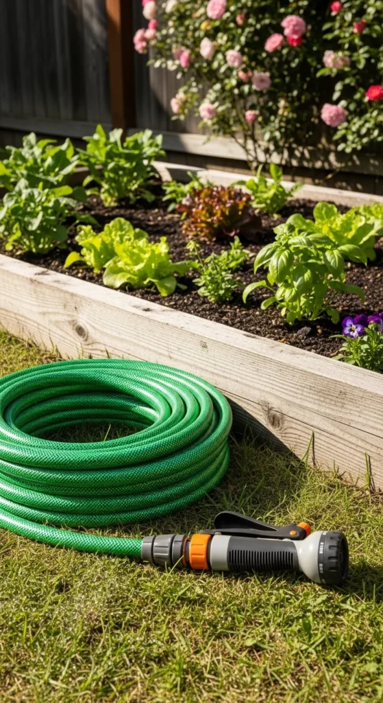 A garden hose makes watering larger areas quick and effortless. Add a spray nozzle so you can switch between mist, shower, or jet settings. Coil it neatly after use to prevent tangling. Look for a hose that’s flexible and kink-resistant for easy handling.