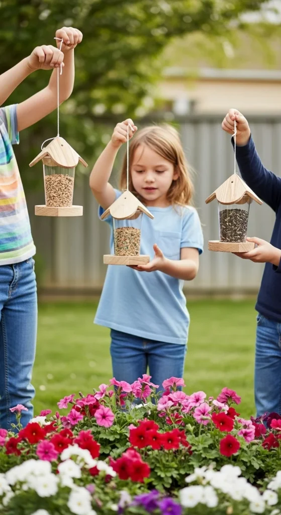 Grow plants that attract birds, like sunflowers or coneflowers. Add simple DIY feeders from pinecones and peanut butter. Kids can keep a bird-watching journal.