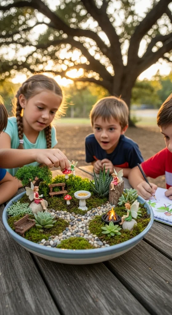 Use small pots, moss, and pebbles to create a magical fairy world. Add tiny houses, toadstools, and miniature bridges. Kids can build their own story as the plants grow.