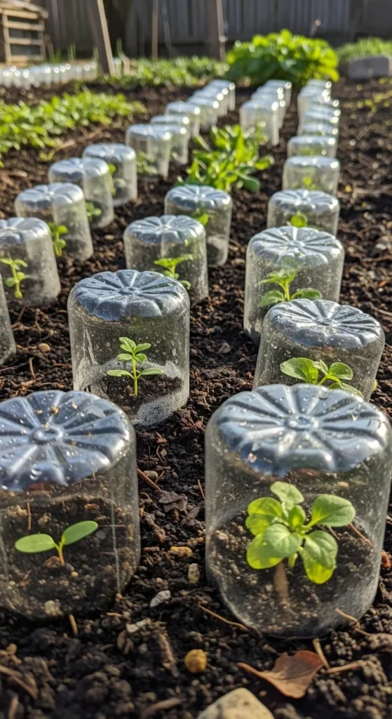 Cut clear plastic bottles and place them over young plants. It traps warmth and moisture, helping seeds sprout faster. It’s an easy science project that feels magical.