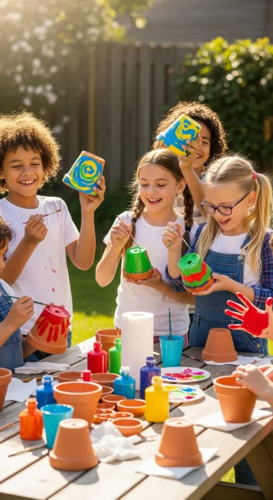 Let children paint pots before planting. Use outdoor-safe paints and sealers so their artwork lasts through the season. It adds color and ownership to their garden space.