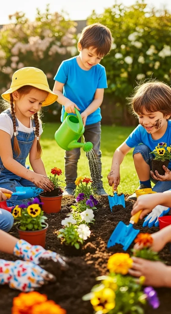 Each child plants a sunflower seed and marks it with their name. Track which one grows tallest. It teaches patience and friendly competition while filling your yard with sunshine.