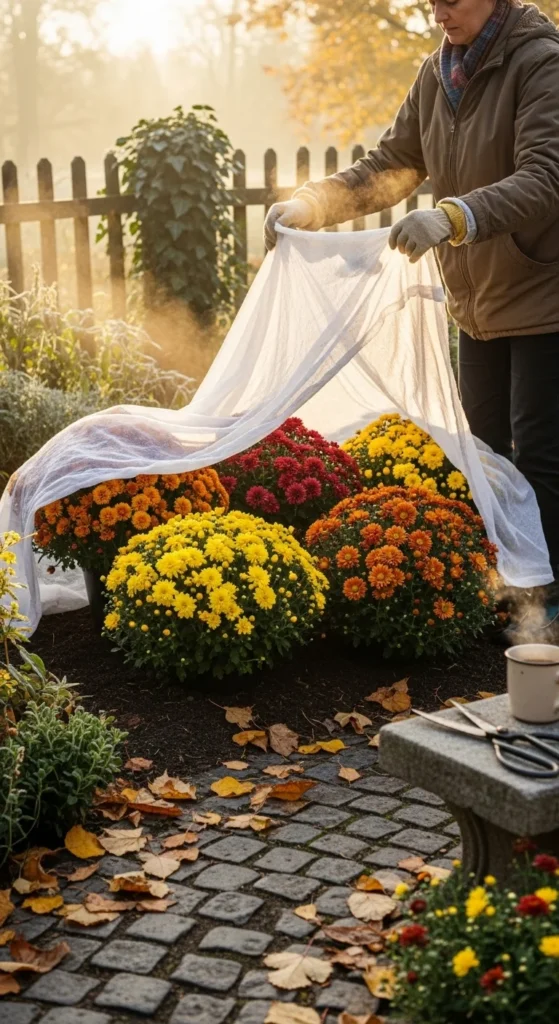 If you see yellowing leaves or weak growth, it’s a sign your mums need nutrients or better drainage.