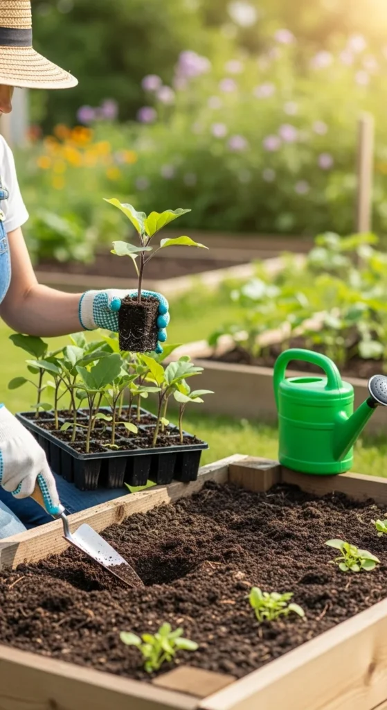 Pro Tip: Eggplants love calcium! Add crushed eggshells or a pinch of gypsum to prevent blossom-end rot.