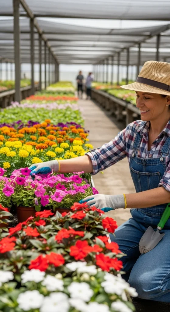 - Full Sun: Petunias, geraniums, marigolds, and zinnias.