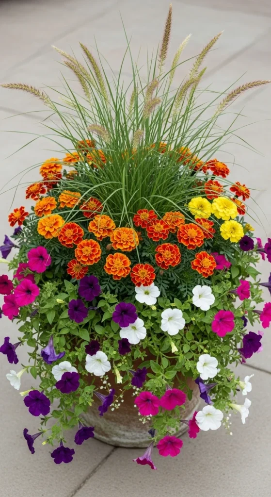 - Spiller: Trailing plants that drape over the edges (like ivy, sweet potato vine, or petunias).