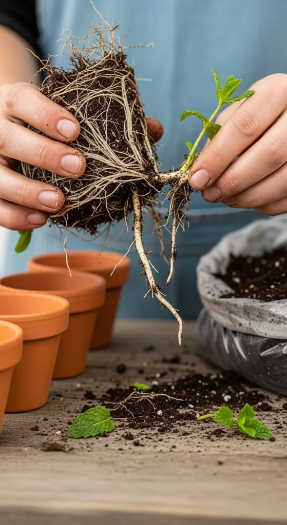 Even with containers, mint can get root-bound over time. Every 2–3 years, divide your plant to refresh growth and keep it manageable.