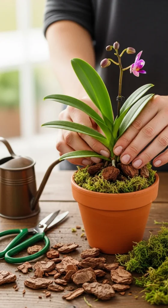 Repot every 1–2 years—usually after flowering—so your orchid stays healthy and fungus-free.