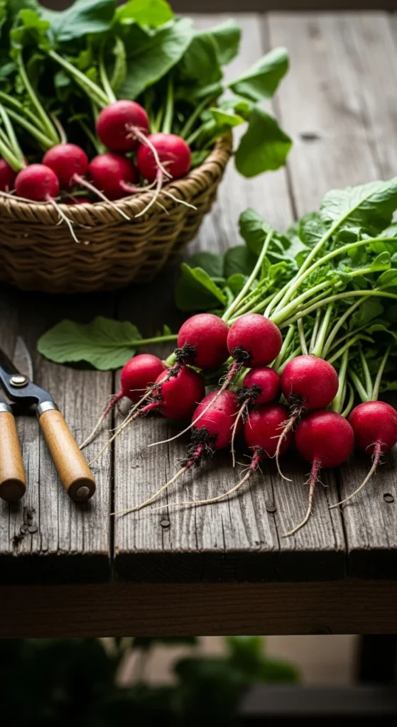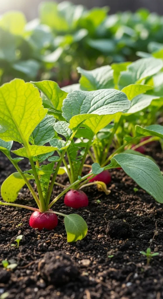 Radishes grow quickly, but they need consistent moisture for tender roots. Dry soil can make them woody and spicy.