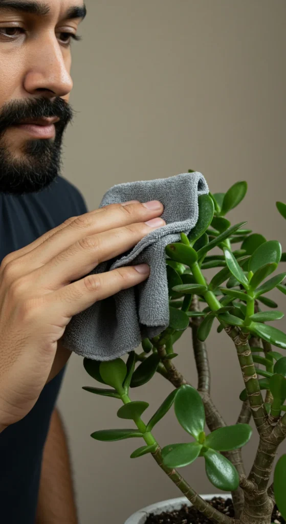 - Wipe leaves with a soft, damp cloth every few weeks.