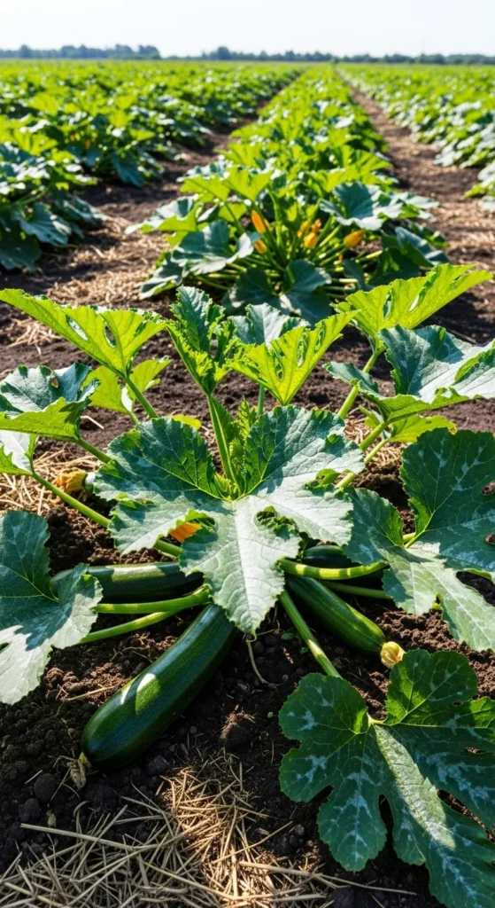 Crowded zucchini plants often struggle with powdery mildew and reduced yields. Each plant needs space to spread its broad leaves and allow good air circulation.