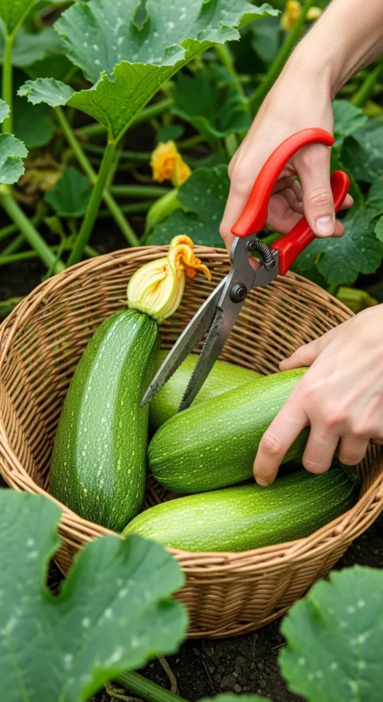 The secret to long-lasting production? Don’t let zucchinis get too big! When you harvest regularly, the plant keeps producing new fruit.