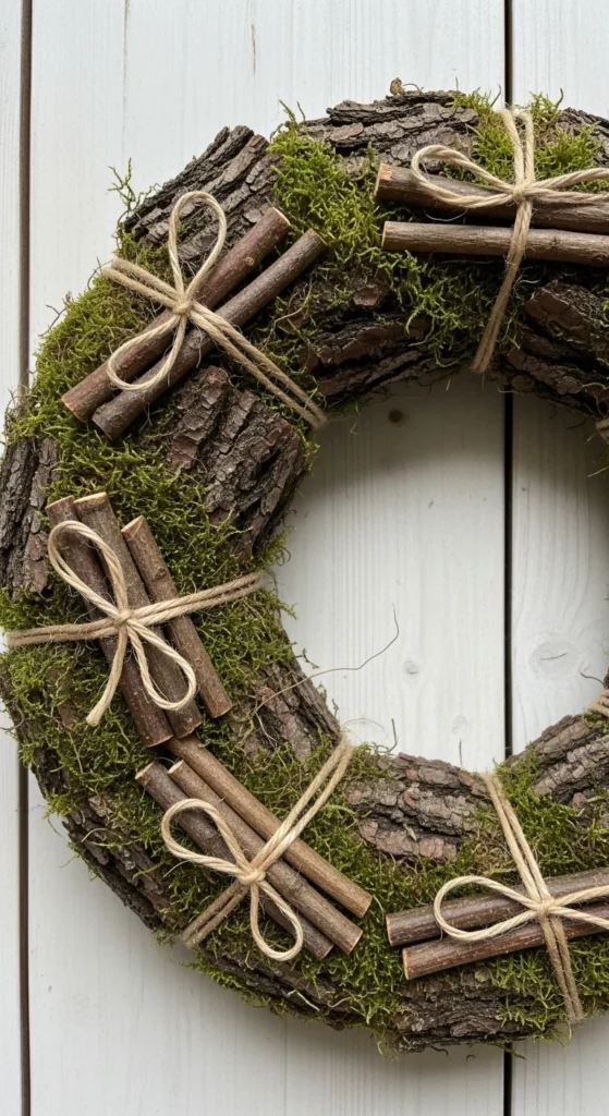 23. Rustic Bark & Moss Wreath