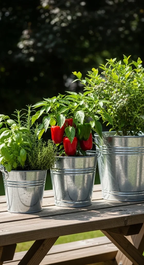 A thriving bucket garden needs containers that survive sun, water, and moving around.