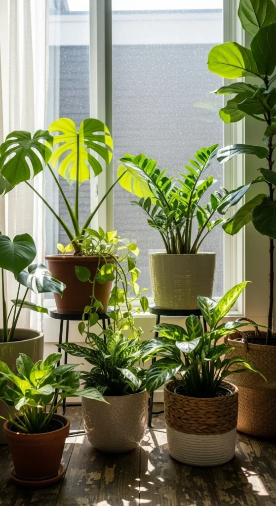 - Shade: Ferns, snake plants, pothos