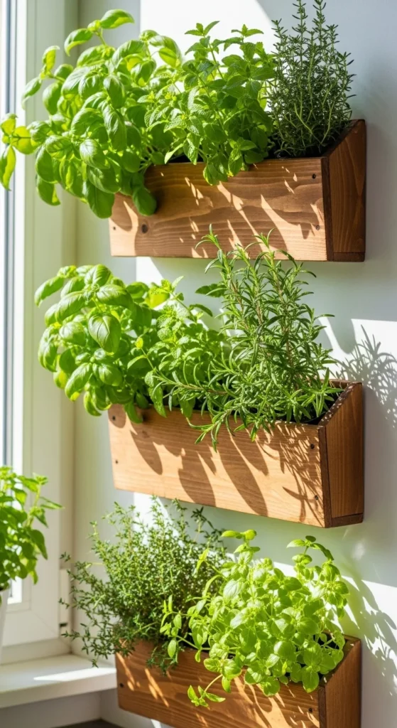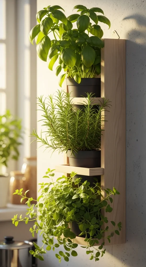 A vertical herb garden isn’t just decoration — it’s a mini grocery store at arm’s reach.