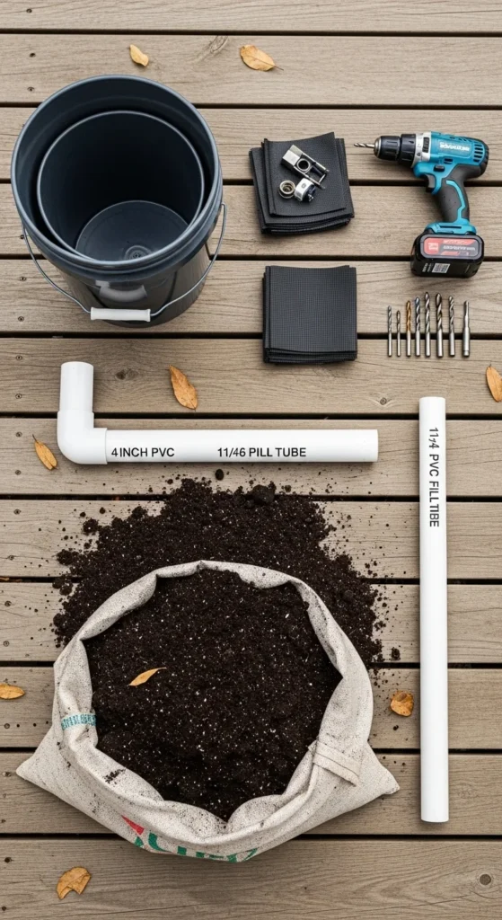 - 1¼-inch PVC pipe (fill tube) + optional funnel