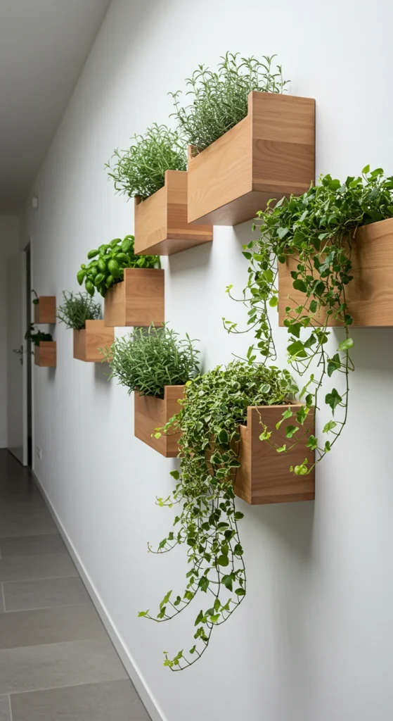 Walls are often overlooked. Install wall-mounted planters to grow herbs, ferns, or succulents. They save floor space while creating a striking display. Wooden boxes, metal racks, or even DIY shelves can work. Choose lightweight containers with drainage trays to protect your walls. This method works especially well in kitchens where fresh herbs are within reach.