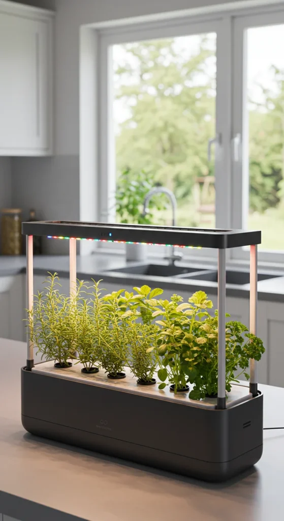 Hydroponic kits are compact systems that grow plants without soil. They use water and nutrients to support growth. Place them on counters or shelves with built-in lights. Perfect for herbs, lettuce, and small vegetables.