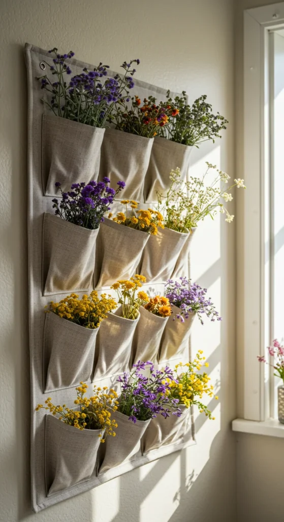 Turn a shoe organizer into vertical planters. Hang it on a wall or door and fill each pocket with soil. Plant herbs, lettuce, or small flowering plants. It’s a smart way to grow many plants in a small footprint.