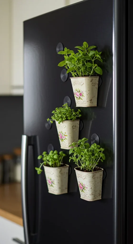 Use magnets to stick small planters to your fridge. These are perfect for herbs or tiny succulents. Keep them watered lightly, and they’ll thrive. It’s a fun way to bring life into the kitchen without taking up counter space.