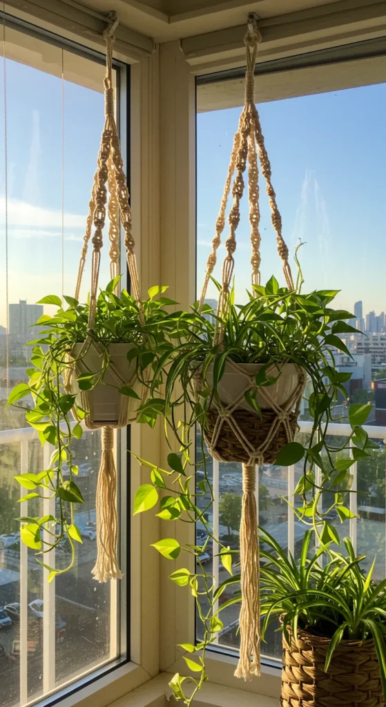 Hanging baskets make use of vertical space. Place them near windows where plants get natural light. Ideal plants include pothos, ivy, and ferns. Use lightweight soil and water carefully to prevent dripping. Hanging baskets also add a decorative touch while freeing up tabletops.