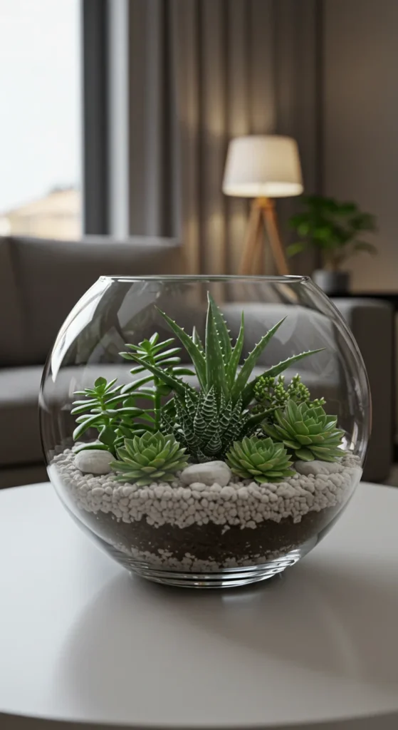 Terrariums are perfect for small plants like succulents and moss. Place them on desks, shelves, or coffee tables. They require minimal care and create a natural centerpiece. Add decorative stones or sand layers for style. Terrariums are a great option when space is tight.