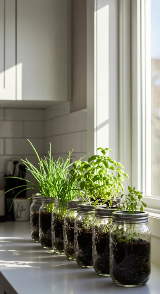 1. Use Mason Jars for Small Herbs