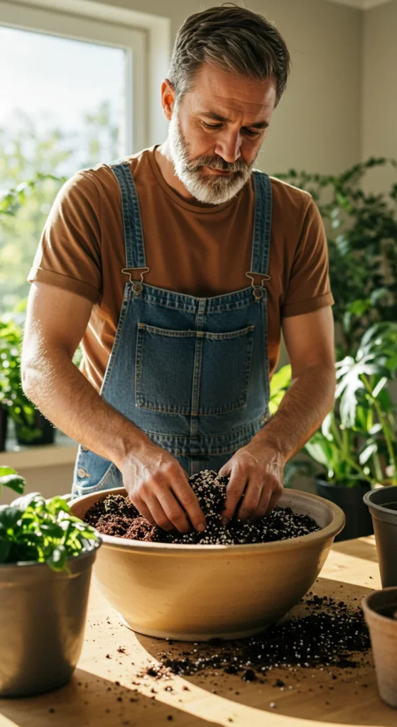 Use light, well-draining soil made for containers. Mix compost and perlite to keep it airy. This helps roots breathe and prevents overwatering issues. Healthy soil is the foundation of strong herbs.