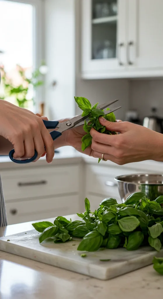 Prune herbs often to encourage bushy growth. Snip just above leaf nodes and use the trimmings in meals. Regular harvesting keeps plants full, prevents flowering, and extends their lifespan.