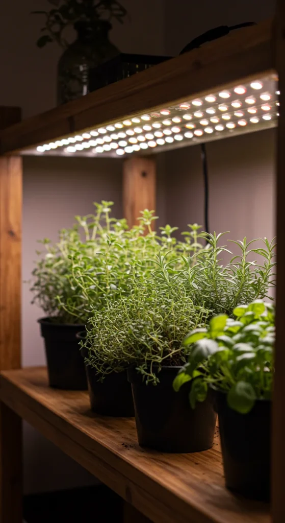 If your apartment lacks sunlight, install LED grow lights. They mimic natural light, helping your herbs thrive year-round. Position lights 6–12 inches above plants and set a timer for 12–14 hours daily. Compact grow lights fit easily under cabinets or shelves, turning any space into a mini indoor garden.
