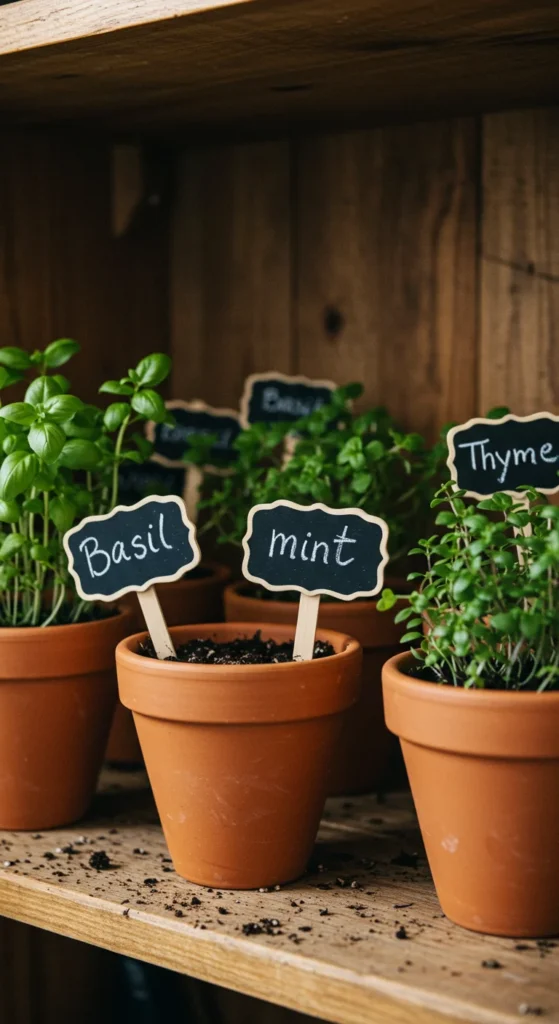 Stay organized by labeling each pot. Use chalkboard tags or reusable plant markers. It helps you quickly identify herbs—especially if you’re growing similar-looking ones like oregano and marjoram. It’s a small detail that adds personality and makes your indoor garden feel polished.