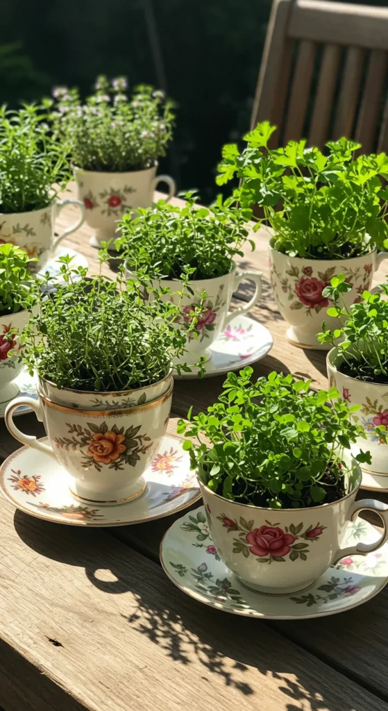 8. Grow Herbs in Teacups