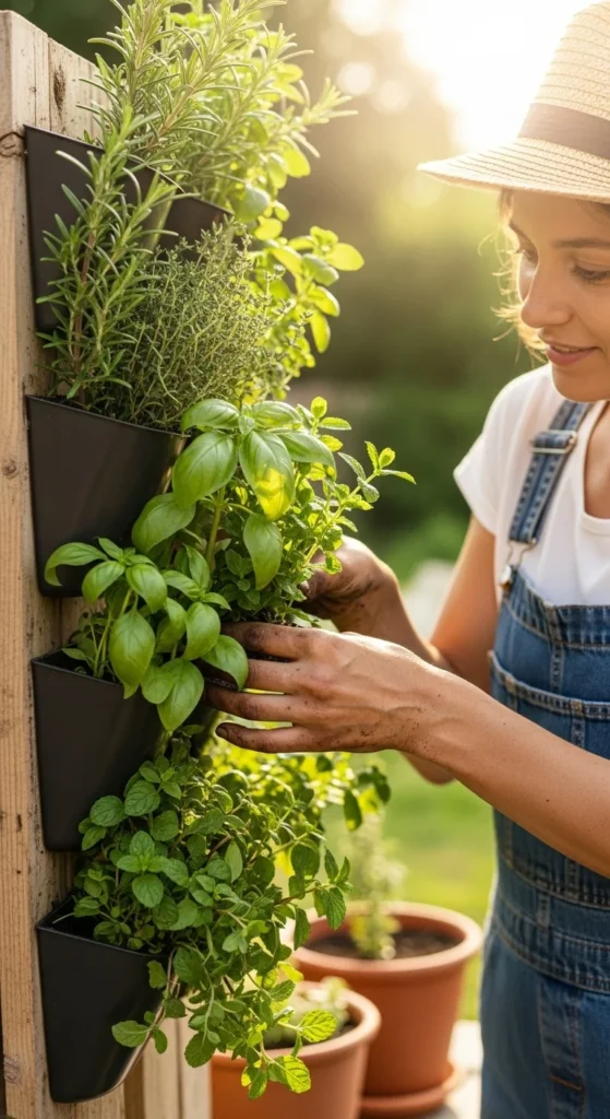 - Pocket Planters: Use fabric planters with built-in pockets — ideal for herbs and smaller flowers.
