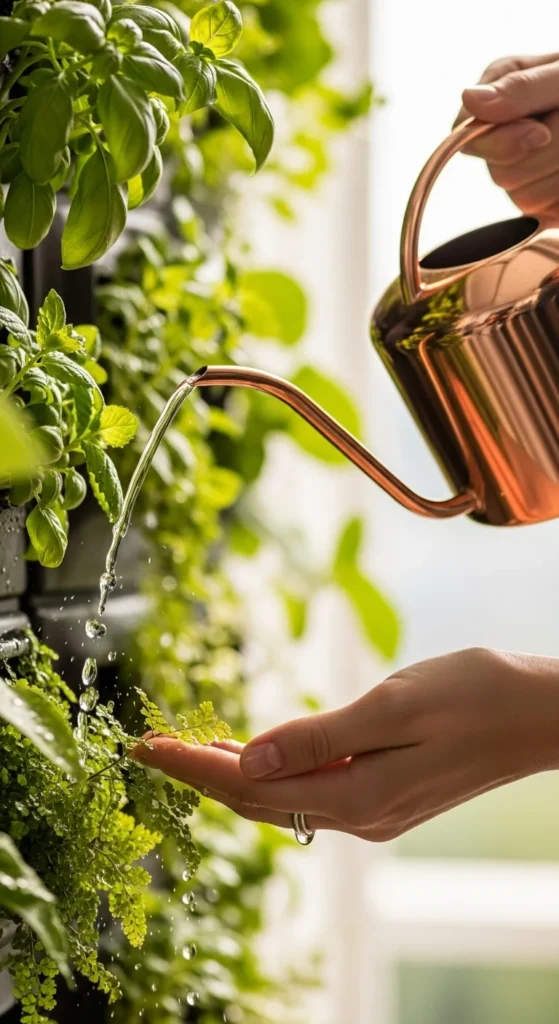 Consistent watering is key, especially since vertical gardens can dry out faster than traditional beds.