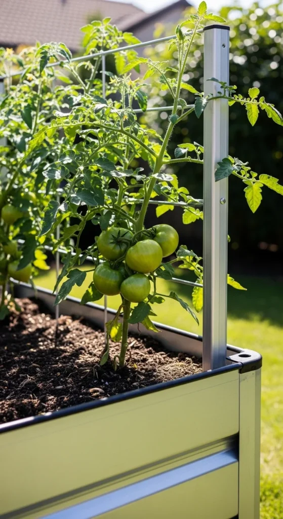 Grow tomatoes and cucumbers vertically.
