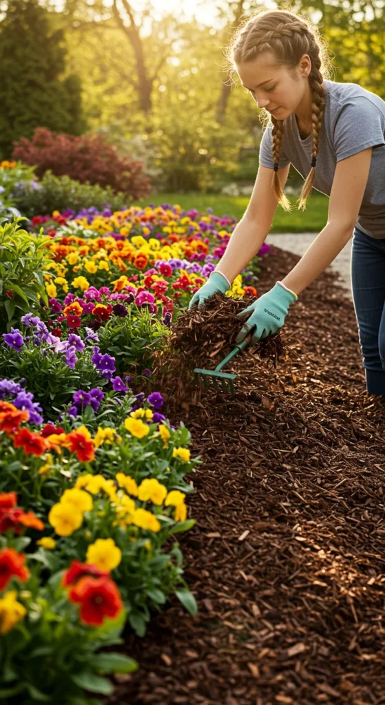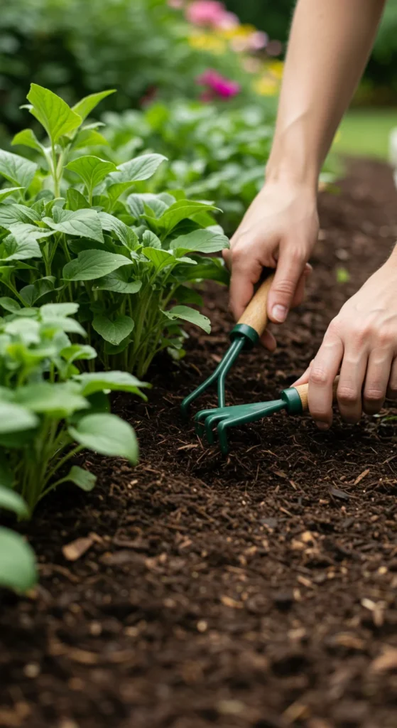 - Leave a 1–2 inch gap around plant stems to prevent rot.