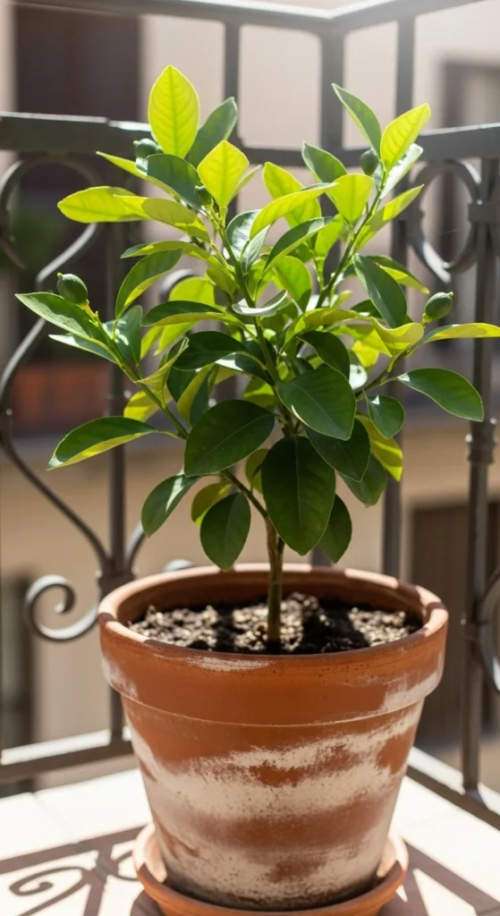 A small citrus plant adds color and fragrance. Choose dwarf varieties like calamondin. Keep it in a lightweight pot and place it where it gets plenty of light. Water lightly and use well-draining soil. This setup brightens any small space.
