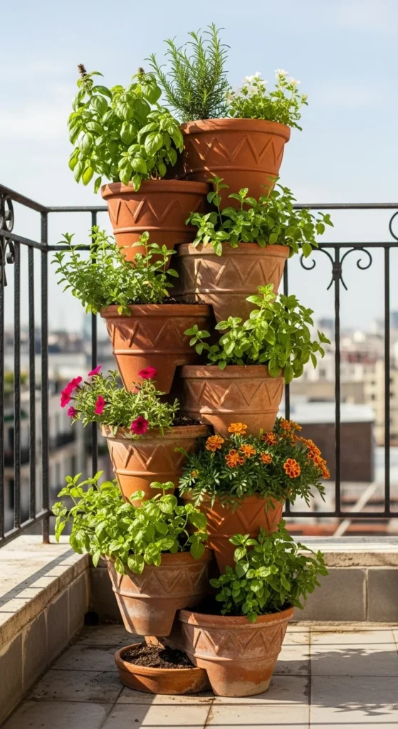 8. Stackable Plastic Pot Tower