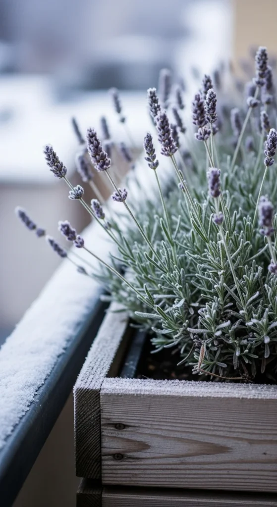 Lavender survives milder winters and adds scent even in cold air. Choose hardy varieties and mix them with small evergreens. Keep the soil dry.