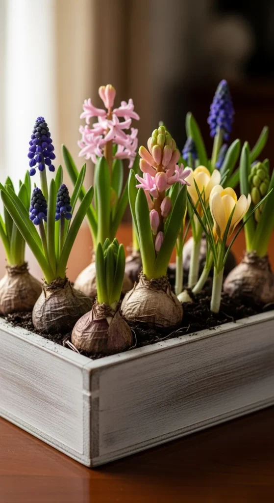 Plant winter bulbs early for surprise color. Layer bulbs at different depths to create staggered blooms. Keep soil moist but not soggy.