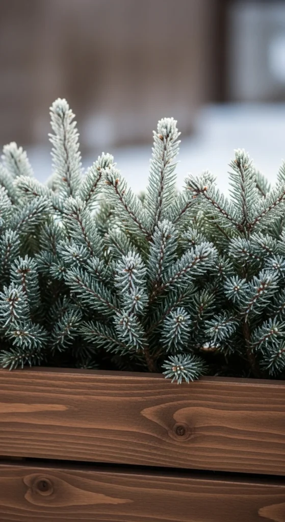 Mini evergreens stay bold all winter and add structure to balcony boxes. Combine one or two small conifers with trailing plants for balance. Keep them well-watered during dry spells but avoid soggy soil.