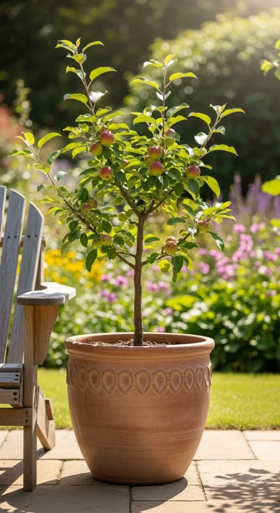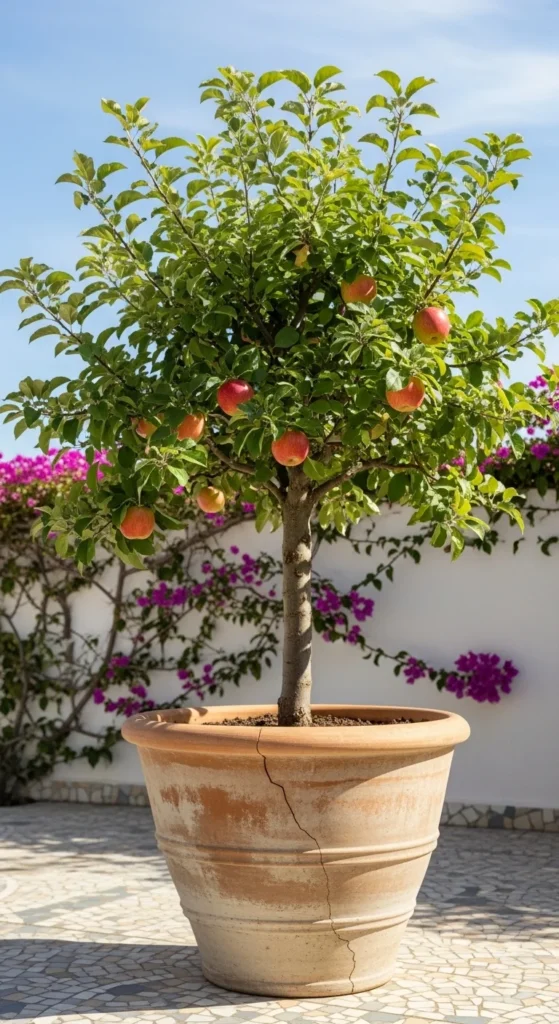 1. Classic Dwarf Apple in a Large Terracotta Pot