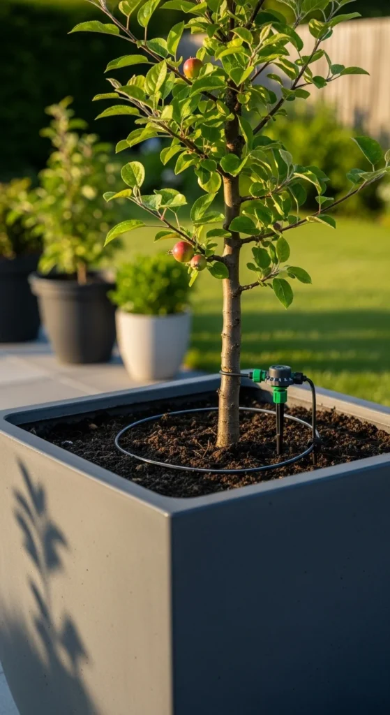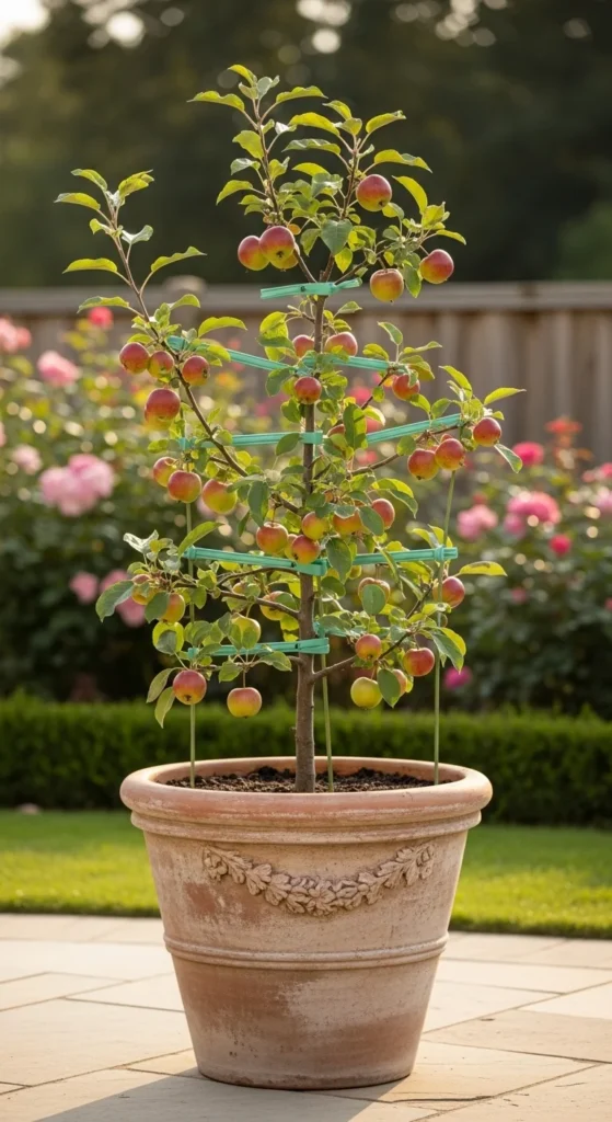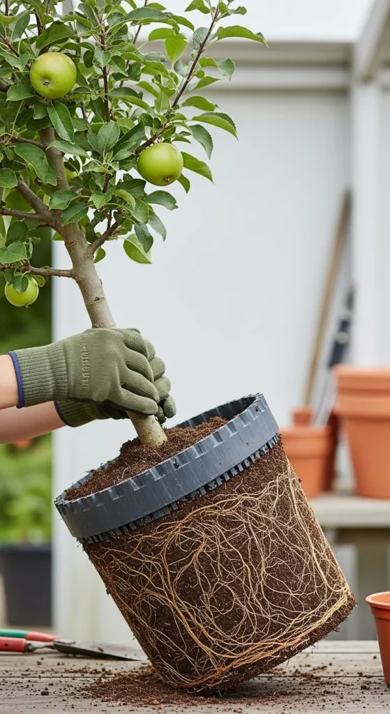 Root-pruning baskets keep roots from circling inside the pot. They create healthy growth patterns that support fruiting. Place the basket inside your container before adding soil. Over time, the apple tree maintains a compact but strong root system.