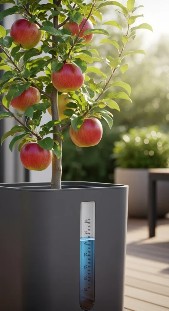A self-watering pot reduces daily maintenance. The reservoir keeps soil moisture consistent, helping young trees during warm spells. Check the reservoir weekly. Use light soil so water moves upward efficiently.