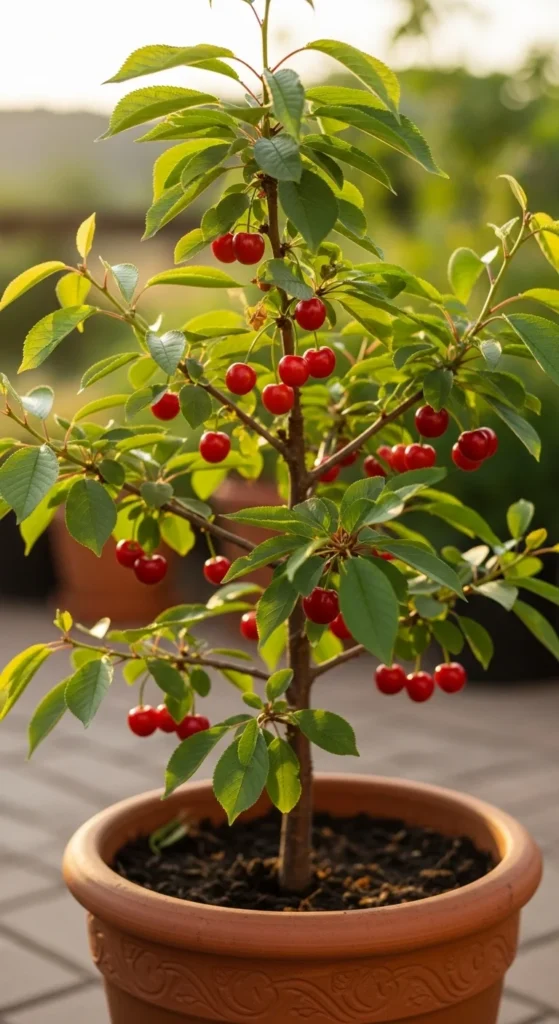 1. Dwarf Patio Cherry in a Terracotta Pot