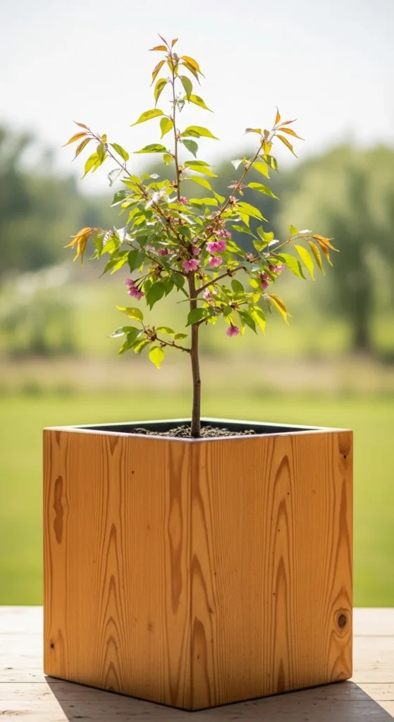 4. Cherry Tree in a Wooden Planter Box