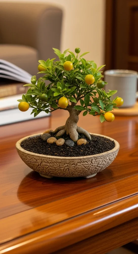 For compact homes, citrus bonsai trees are ideal. Train a small Calamondin or Kaffir Lime for miniature growth. Prune regularly and use shallow pots to maintain form.